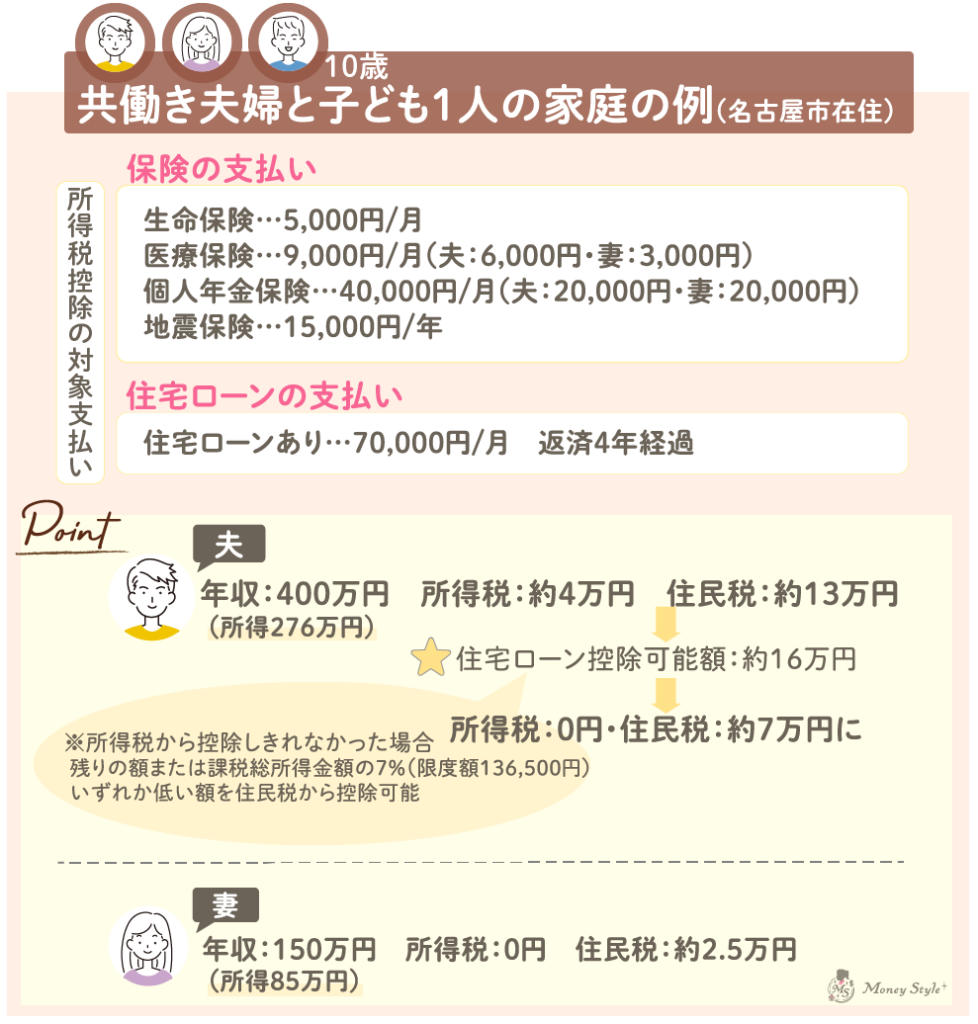 よくある一般的な家庭ですが、夫にだけ所得控除が付いています。